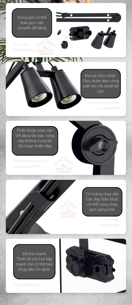 Kẹp đèn đôi hút kính chuyên dụng cho chuồng nuôi bò sát cảnh